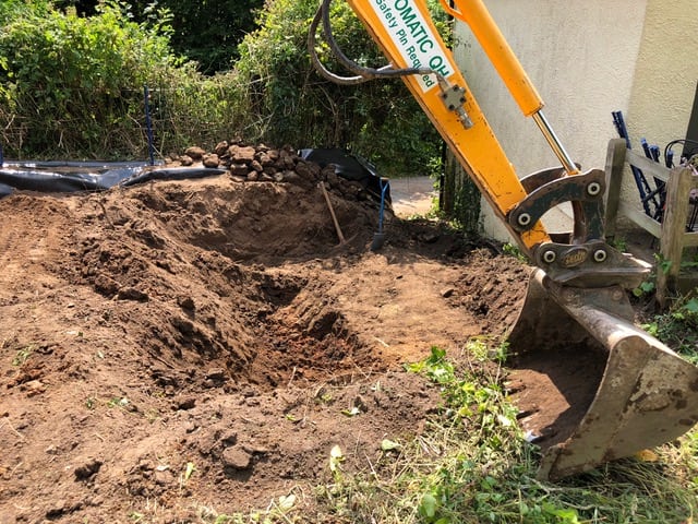 The ideal process is to apply herbicide a few weeks prior to mechanical removal in order to allow the herbicide to penetrate the root system as thoroughly as possible. Excavation to a depth of 3 to 5 metres and lateral excavation around any remaining knotweed sites to allow for spread.