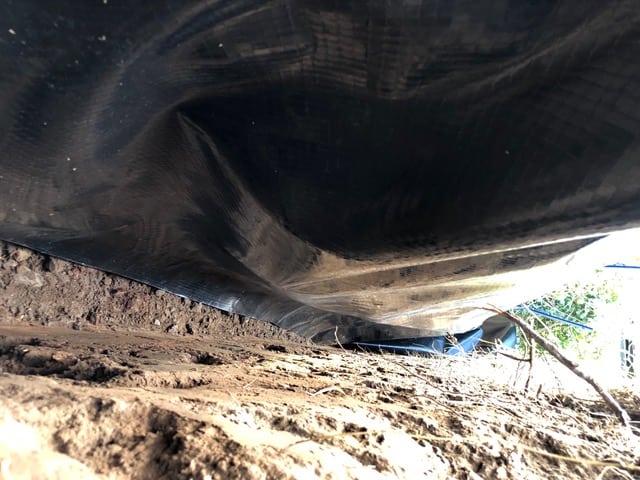 In some cases, geomembranes are placed to line the area to ensure that if there are any remaining rhizomes, the spread is contained and does not lead to any further spread.